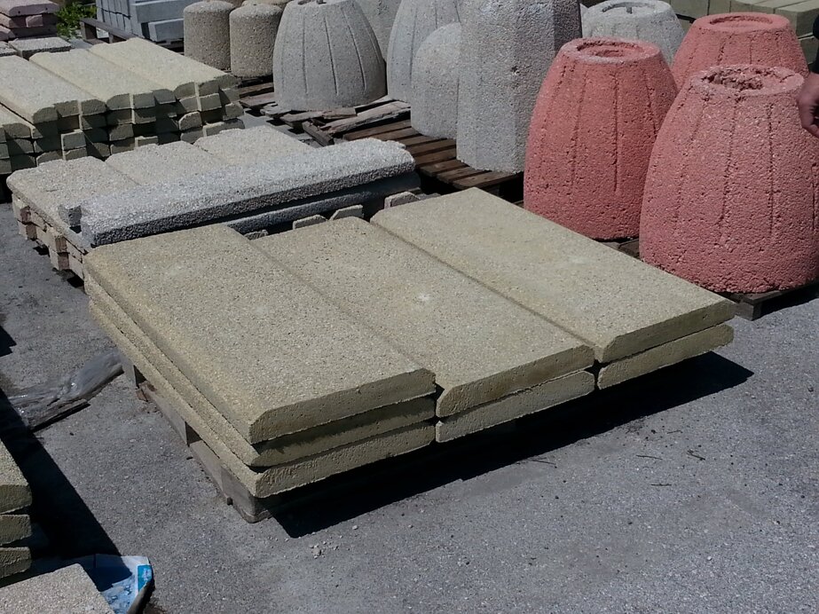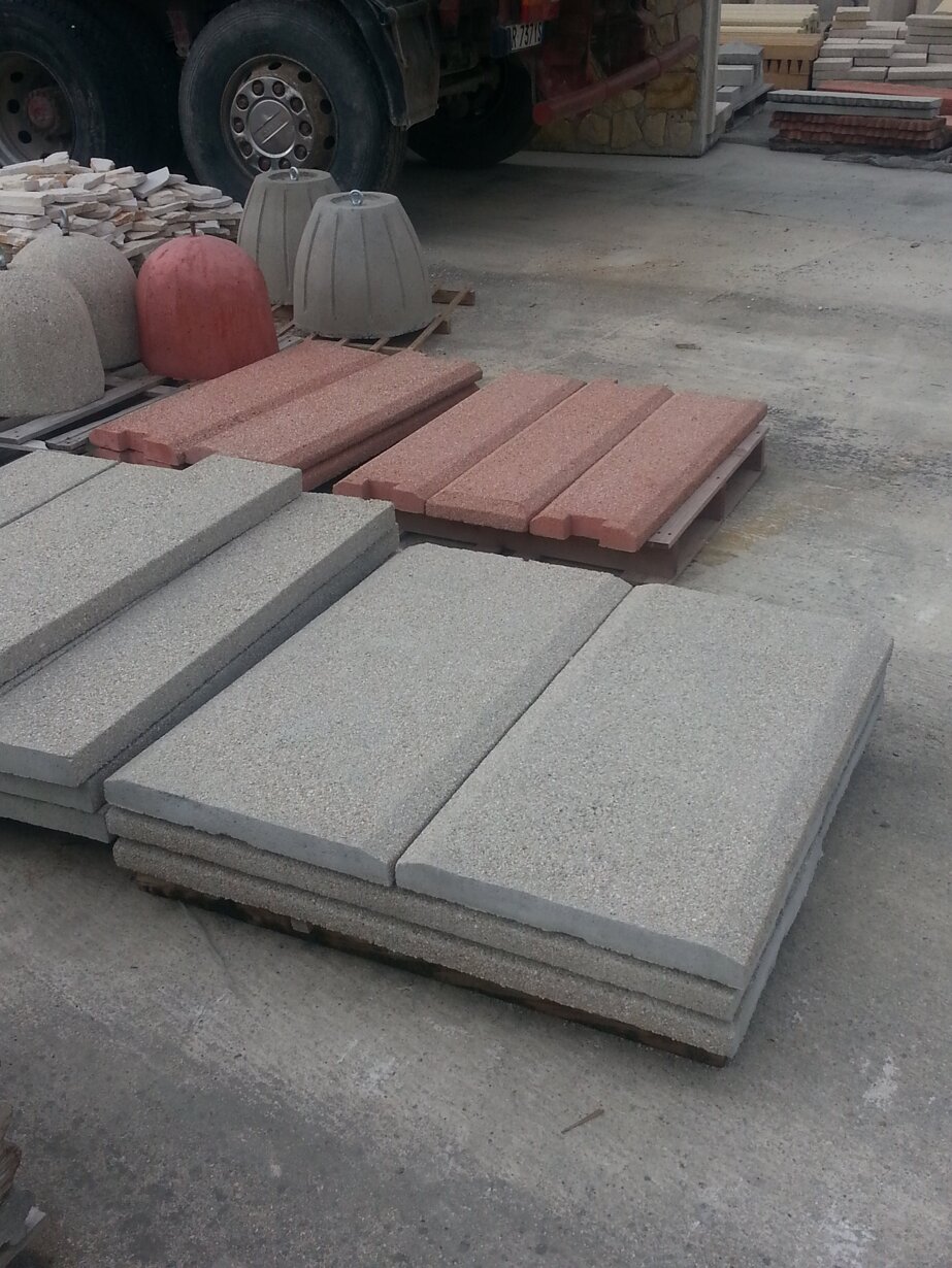 Copertine in calcestruzzo di diverse forme e dimensioni (lisce, sabbiate, con o senza incastro, ad angolo vivo o smussate lateralmente).