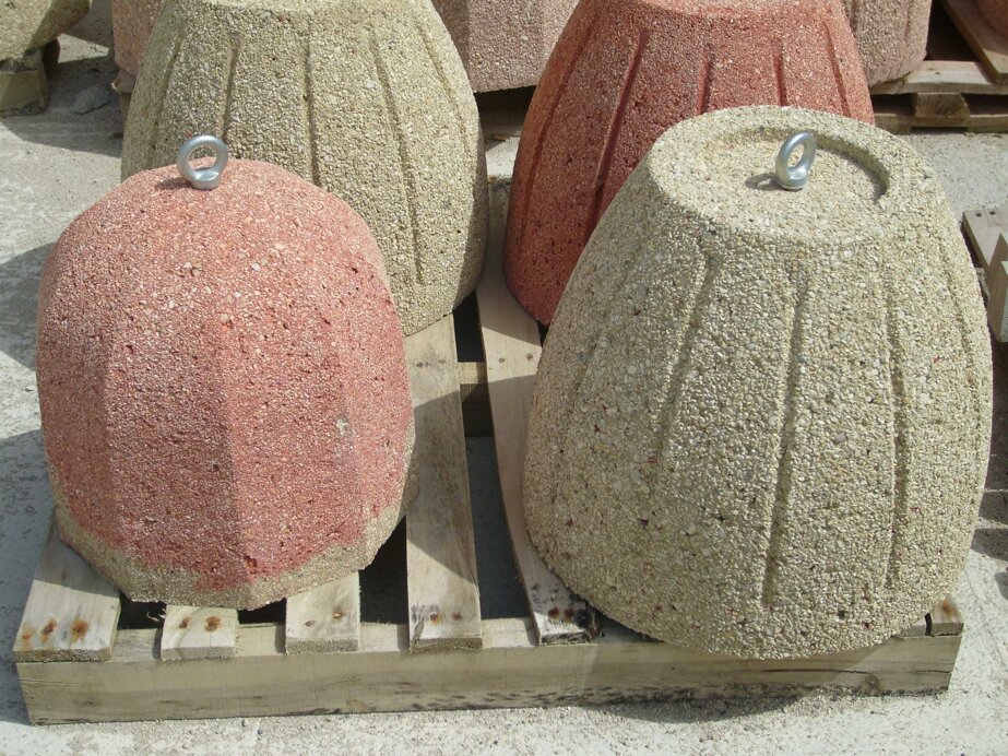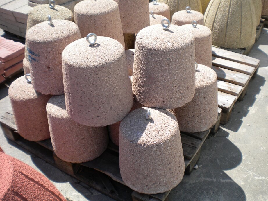 Dispositivi stradali in calcestruzzo di forma cilindrica. La superficie può essere liscia o trattata mediante sabbiatura (su richiesta).
