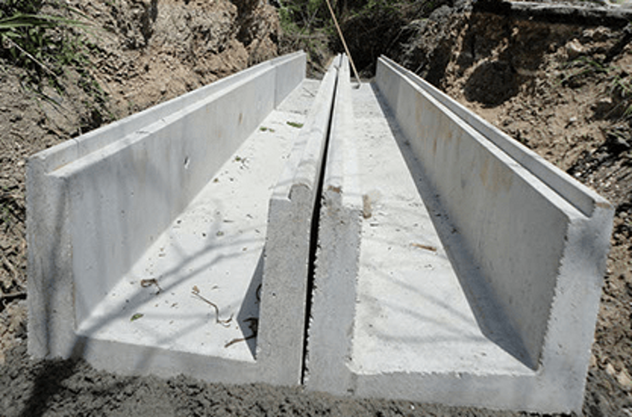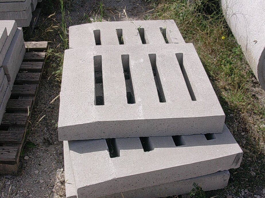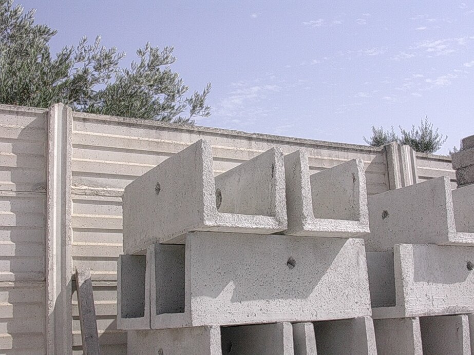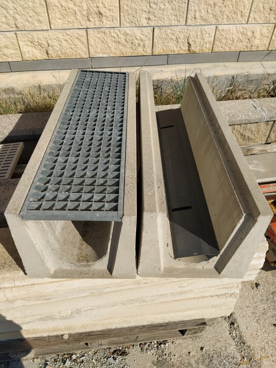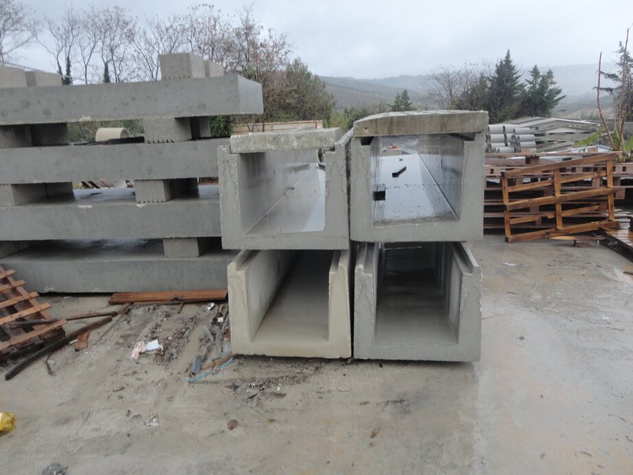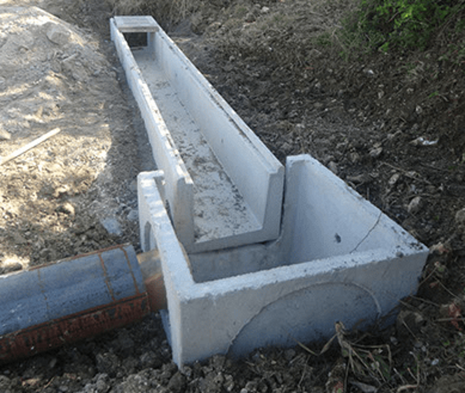 Elementi in calcestruzzo di diverse forme e dimensioni per lo scolo delle acque meteoriche, per la realizzazione di canalizzazioni interrate o a vista.