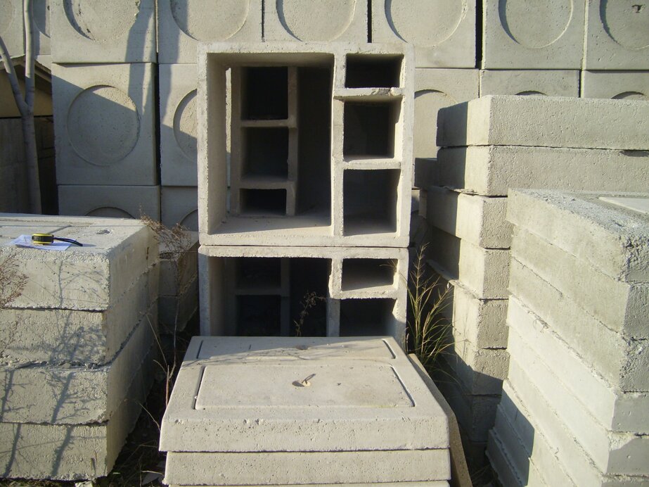 Pozzetti prefabbricati in calcestruzzo. Costituiti da un elemento di base (fondo), eventuale elemento di prolunga e coperchio pedonale o carrabile del tipo ispezionabile in c.a.